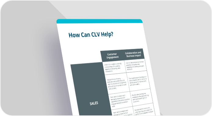 P A G E 1 2 Customer Engagement Collaboration and Business Impact SALES Utilize CLV insights to identify cross-selling and upselling opportunities during sales interactions. Use CLV data to forecast revenue potential and guide sales targeting and territory allocation decisions. Analyze the purchasing behaviors and preferences of high-CLV customers to optimize product recommendations and sales pitches. Track and measure the impact of sales initiatives on CLV metrics to identify areas for improvement and optimization. Tailor sales strategies and messaging based on CLV segments to maximize customer engagement and conversion rates. Provide sales training that emphasizes the value and long- term potential of high-CLV customers. Tailor sales strategies and messaging based on CLV segments to maximize customer engagement and conversion rates. Incorporate CLV metrics into sales reporting and analytics for performance evaluation and goal setting. Collaborate with marketing teams to align sales and marketing efforts based on CLV segments. How Can CLV Help?